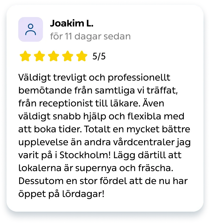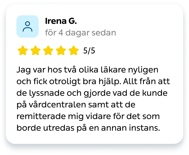 När du väljer Kry Järvastaden får du inte bara en fast läkarkontakt och kontinuerlig vård – du får också tillgång till vår lättakut samma dag, digital receptförnyelse och vård via appen dygnet runt.